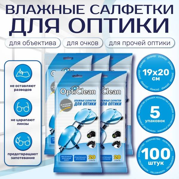 Maintain crystal-clear vision and pristine optics with OptiClean lens cleaning wipes. This bulk pack contains 100 individually wrapped wipes (5 packs of 20), perfect for cleaning eyeglasses, smartphone cameras, camera lenses, and other delicate optical surfaces. Each wipe is pre-moistened with a streak-free, alcohol-based cleaning solution formulated to gently remove dust, fingerprints, and smudges without scratching. OptiClean wipes are ideal for on-the-go cleaning and provide a quick and effective way to keep your lenses clean and prevent fogging. Protect your valuable equipment and enhance image quality with the superior cleaning power of OptiClean. Perfect for home or travel.