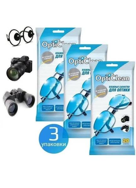 Maintain sparkling clear vision with OptiClean lens cleaning wipes. This convenient 3-pack (60 wipes total) provides a simple and effective way to keep your glasses and optics pristine. Each individually-wrapped wipe gently cleanses lenses without scratching, leaving them streak-free and fog-resistant for long-lasting clarity. Suitable for all types of lenses (glass and plastic), OptiClean wipes are infused with a pleasant fragrance and a specially formulated solution that dries quickly, leaving no residue. For best results, use wipes while damp and avoid using dry wipes.