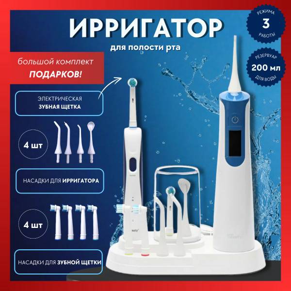 Experience unparalleled oral hygiene with this premium oral irrigator and electric toothbrush set. This complete system provides a superior cleaning experience for teeth, gums, braces, crowns, and implants, ensuring a healthy and radiant smile.