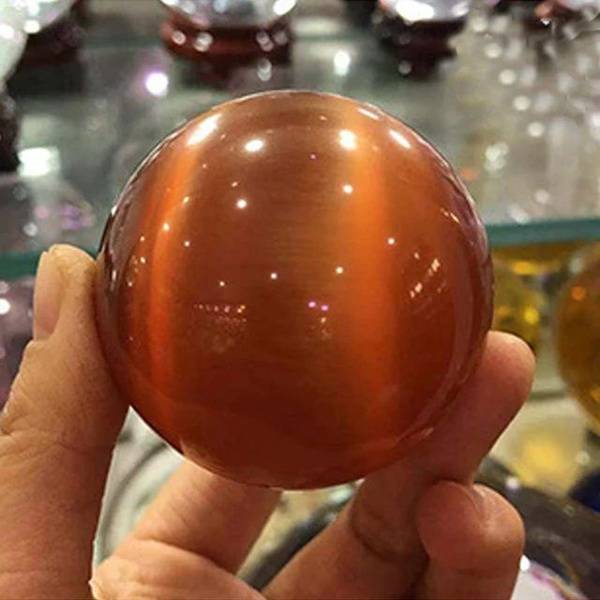 Beyond its therapeutic benefits, the Orange Cat's Eye glass ball holds symbolic significance. In many cultures, it is associated with positive energy, protection, and enhanced focus. It serves as a beautiful decorative element, adding a touch of mystique and elegance to any space.