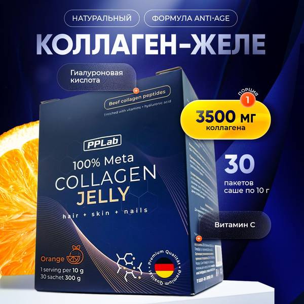 "description": "Experience the revitalizing power of PP Lab Collagen, a delicious orange-flavored jelly stick formulated with natural bovine collagen, vitamin C, and hyaluronic acid. This daily supplement supports healthy hair, skin, nails, and joints. Each convenient sachet provides essential nutrients to combat the visible signs of aging, boosting collagen synthesis and promoting a youthful glow. Enjoy a refreshing taste free from sugar, gluten, soy, and GMOs. For optimal results, consume one sachet daily 30 minutes before a meal (maximum 3 sachets per day). We recommend a continuous month-long course, followed by a month-long break before repeating.",