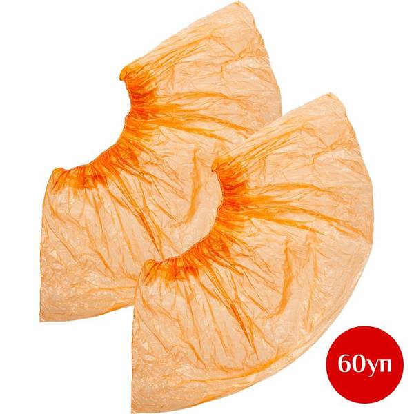 High-quality, textured, non-sterile polyethylene shoe covers in bright orange. Anti-slip design. 50 pairs per pack, 3500 pairs per carton. Also available: matching orange disposable Kimono gowns (item #552883). Weight: 2.8g per pair. +/- 10% tolerance on specifications.