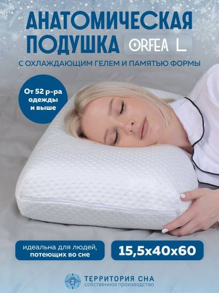 Keywords: memory foam pillow, cooling pillow, gel pillow, anatomical pillow, neck support pillow, sleep pillow, orthopedic pillow, side sleeper pillow, back sleeper pillow, stomach sleeper pillow, 60x40 cm pillow, Orfea L pillow, temperature regulating pillow, breathable pillow, removable cover pillow, comfortable pillow