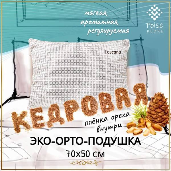 cedar pillow, organic pillow, orthopedic pillow, hypoallergenic pillow, 50x70 pillow, double cover pillow, adjustable pillow, cedar shell filling, natural pillow, eco-friendly pillow, sleep pillow, side sleeper pillow, back sleeper pillow, comfortable pillow, breathable pillow, machine washable pillow, Poise Kedre Toscana.
