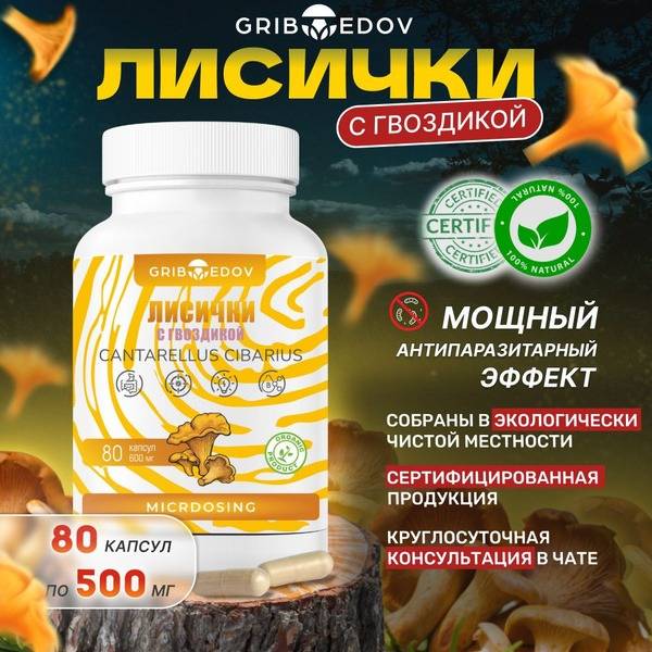 Description: Experience the power of nature with our Dried Chanterelle Mushroom Capsules (80 capsules, 500mg each). A potent natural antiparasitic and anthelmintic, this bio-cleanse formula utilizes the remarkable properties of chanterelle mushrooms, enhanced with a touch of clove for amplified efficacy. These capsules effectively penetrate helminths, disrupting egg production and cell division in protozoa. Many users report significant improvements within days. Beyond parasite cleansing, chanterelle mushrooms support liver health, detoxification, and improved digestive function. A month-long course boosts immunity and overall well-being, leaving you feeling lighter and healthier. This natural detox is a perfect complement to other medicinal mushrooms like Lion's Mane (both mycelium and fruiting body), Trametes, Cordyceps, Reishi, and is even safe to use concurrently with Amanita Muscaria. Rich in vitamins A, C, D, D2, B1, B2, B3, and PP, chanterelle mushrooms contribute to overall health and well-being. More than just a delicious edible mushroom, chanterelle is a powerful antihelmintic, potentially helping prevent conditions like diabetes, cirrhosis, and kidney stones. Our capsules use only the highest-quality ingredients for maximum effectiveness. Unlike harsh deworming tablets, our convenient capsule form makes taking this natural remedy pleasant and easy. Recommended dosage: 2 capsules twice daily (morning and night), on an empty stomach. Preventive course: 1-2 months. Therapeutic course: 3-6 months.