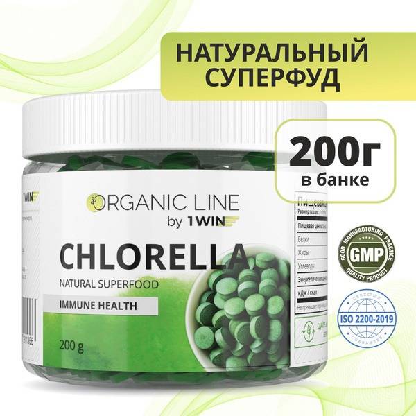 Boost your health with 1WIN's Organic Chlorella tablets – a potent superfood packed with over 40 essential amino acids and vital nutrients. Chlorella's chlorophyll, similar in structure to hemoglobin, enhances oxygenation, while its detoxifying properties cleanse the body of toxins and шлаки (waste products). Support your immune system, improve gut health, and naturally lower blood pressure and cholesterol. Rich in iron, it aids in treating iron-deficiency anemia. Take 2 tablets daily, chewed, with half a glass of water, 30 minutes before meals. Follow a 20-day cycle, with a one-week break, then a two-week cycle. Experience the power of nature with 200g of pressed organic Chlorella tablets.