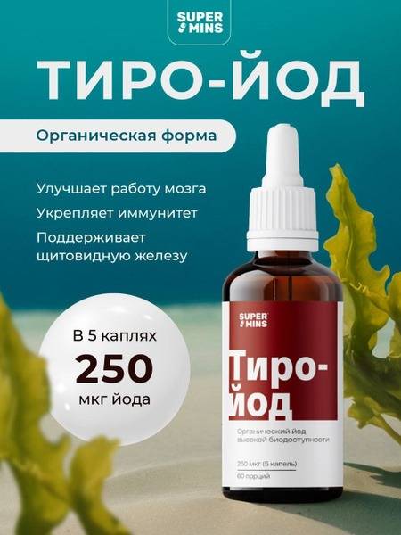 organic iodine, iodine supplement, thyro-iodine, thyroid support, thyroid health, iodine deficiency, seaweed iodine, liquid iodine, 250 mcg iodine, Supermins, amino acid tyrosine, bioavailable iodine, immune support, brain health, antimicrobial, antiviral, antifungal, health supplement, dietary supplement.