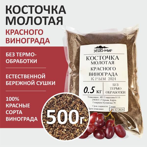Experience the potent health benefits of 500g of organic, ground red grape seeds. Unlike powders, our coarsely ground seeds retain nearly 90% of the grape's beneficial properties, including a high concentration of resveratrol. These seeds are thermally unprocessed, ensuring maximum nutrient retention.
