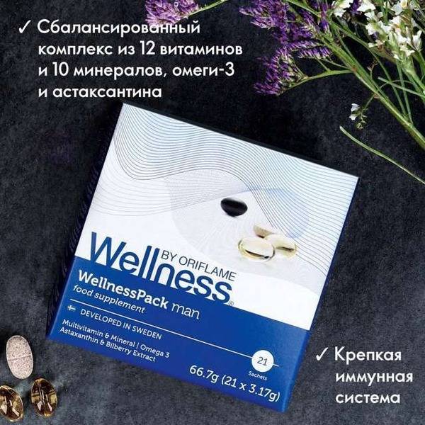 Keywords: Oriflame, Men's Wellness Pack, Multivitamins, Minerals, Omega-3, Astaxanthin, Bilberry Extract, Supplements, Men's Health, Vitamins, Minerals, Antioxidant, Immune System, Heart Health, Brain Health, Eye Health, Sustainable, Daily Supplement, Sachets, Convenient, Nutritional Support