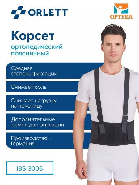 lumbar support brace, back brace, lower back pain, orthopedic corset, back support, spinal support, spondylolisthesis, osteochondrosis, herniated disc, protruded disc, radiculitis, scoliosis, muscle strain, pain relief, adjustable support, IBS-3006, ORLETT, medical brace, back pain relief, posture corrector, back pain support, waist support, hip support, spring stays, compression straps, breathable fabric, easy to use.