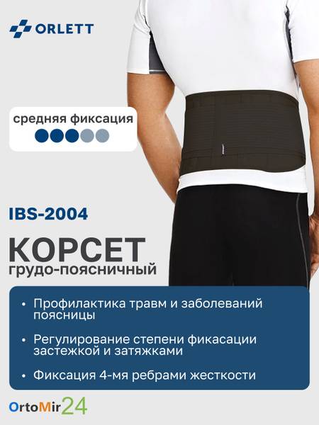 Experience superior lumbar support with the Orlett IBS-2004 back brace. This high-quality support belt features four rigid stays for effective stabilization of the lower back (Th12-S1), alleviating pain and promoting healing. Designed for moderate support, it's perfect for a variety of conditions and activities.