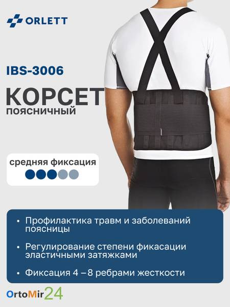 lumbar support belt, back brace, orthopedic corset, Orlett IBS-3006, lower back pain, back pain relief, back support, radiculitis, osteochondrosis, spondylitis, herniated disc, protruded disc, spinal support, adjustable straps, Velcro closure, XXXL, moderate support, post-surgical support, posture correction, manual therapy support, pain management, back brace for men, back brace for women, orthopedic supplies.