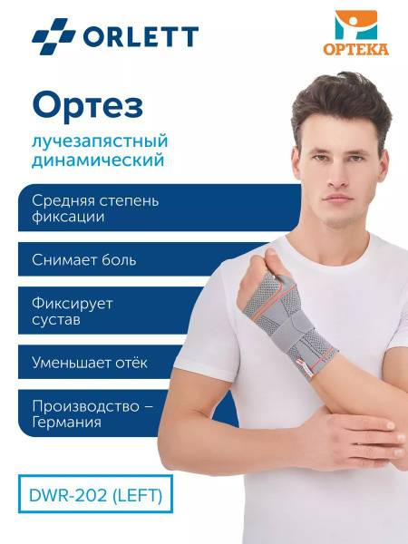 Experience superior support and pain relief with the ORLETT DWR-202 wrist brace (left). This medical-grade brace is designed for effective immobilization and stabilization of the wrist joint, accelerating recovery from injuries and surgeries while alleviating pain associated with arthritis, arthrosis, and tendinopathies.