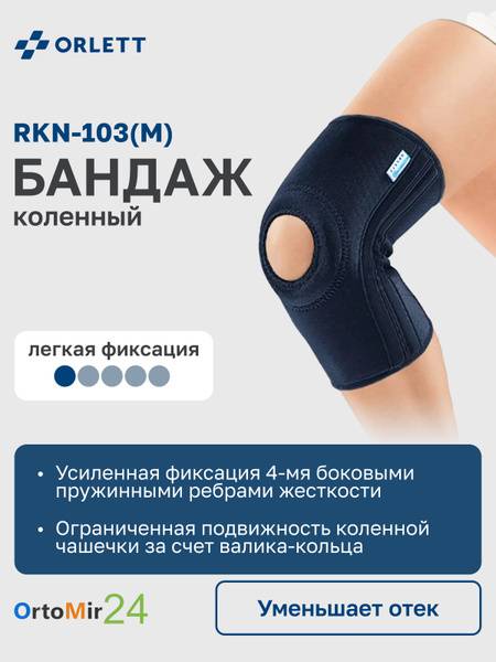 The Orlett RKN-103(M) elastic knee brace provides superior support and stability for your knee joint. Featuring four spiral steel support ribs and a patellar ring, this brace effectively limits pathological movement, reduces stress on the knee, and helps alleviate pain. Ideal for managing inflammatory conditions, injuries, and post-operative recovery, it minimizes swelling, improves circulation, and enhances medication absorption. The breathable neoprene material ensures comfortable all-day wear. Suitable for: inflammatory and degenerative knee diseases (arthritis, synovitis, peri-articular edema, bursitis, and early-stage arthrosis – where heat therapy is not contraindicated); injury prevention during sports and physical activity; post-acute treatment of contusions and ligament sprains; knee pain; patellar conditions; and rehabilitation after knee injuries and surgeries. Available in Large, Black.