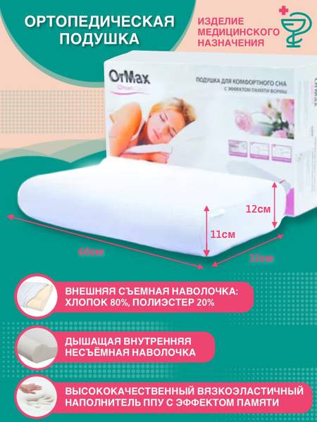 Keywords: orthopedic pillow, memory foam pillow, neck pillow, sleep pillow, ergonomic pillow, Ormax, Dream Lux, headache relief, sleep apnea, snoring reduction, healthy sleep, hypoallergenic, breathable, 32x60cm, 12cm, gift ideas, clinical trial, orthopedic support, natural cotton, removable cover.
