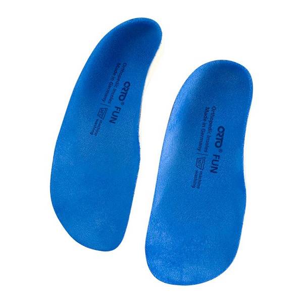 ORTO Fun orthopedic insoles provide superior support and correction for children and adolescents with foot problems. Designed with a robust frame and extended lateral support (border) reaching the metatarsal heads, these insoles offer significant longitudinal arch support and a deep, cup-shaped heel cradle. The durable, wear-resistant material ensures long-lasting comfort and performance.