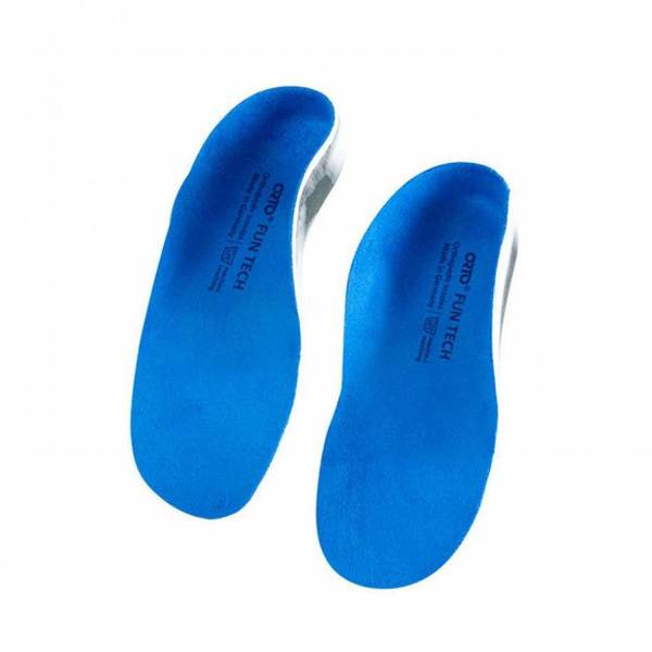 Description: Ensure proper sizing using the size chart in the photos. ORTO Fun Tech orthotic insoles provide superior support for children and teenagers. Featuring a supportive frame and pronounced side support (high sides) extending to the metatarsal heads, these insoles offer significant longitudinal arch support and a cupped heel. A rigid visor provides additional lateral support. The Memopur® base molds to the foot over time, redistributing pressure on soft tissues. The durable top covering ensures long-lasting wear. Includes two polymer support angles for enhanced rigidity.