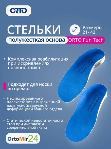 ORTO Fun Tech semi-rigid orthotic insoles are specifically designed to promote healthy posture and foot development in preschool children. These children's insoles correct foot position during walking and active movement, helping to prevent and address common foot problems.