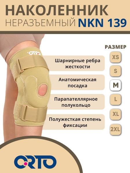 The ORTO NKN 139 knee brace provides semi-rigid support for the knee joint. This non-articulating brace features a seamless neoprene base with patellar and popliteal openings for optimal comfort and breathability. Dual lateral metal hinges, housed in protective pockets, offer superior stability and minimize lateral instability. A U-shaped parapatellar silicone ring ensures proper patellar tracking and unrestricted movement. Adjustable straps with Velcro closures provide a secure and customized fit, while limiting hyperextension to 175°. The 30cm high design offers comprehensive support and warmth.