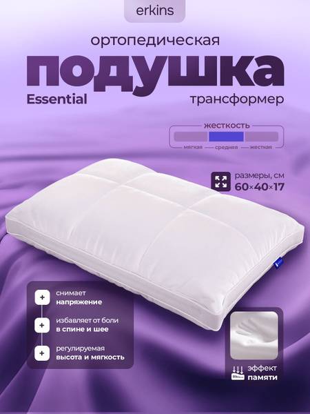 </section> <hr> <section>Elevate your sleep with the ERKINS ESSENTIAL Orthopedic Pillow, a transformer design engineered with high-density Memory Foam for exceptional comfort and support. This innovative pillow actively adapts to your body, providing perfect head and neck alignment to release tension and promote deep, restorative sleep.