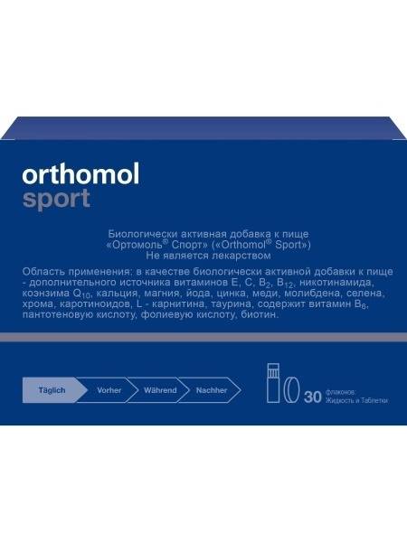 Orthomol Sport, sports supplement, athlete nutrition, vitamins for athletes, minerals for athletes, endurance supplement, recovery supplement, immunity booster, anti-doping supplement, dietary supplement, B vitamins, vitamin C, vitamin E, vitamin A, zinc, selenium, iron, copper, L-carnitine, Coenzyme Q10, potassium, folic acid, vitamin B12, vitamin B6, beta-carotene, citrus bioflavonoids, pantothenic acid, biotin, muscle recovery, performance enhancement, sports nutrition, 30 day supply.