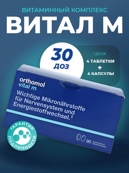 Orthomol Vital m is a comprehensive orthomolecular nutritional supplement designed to support men experiencing burnout, chronic fatigue, or stress-related metabolic imbalances. This advanced formula helps boost vitality and supports male libido. However, it's crucial to consult your physician before starting any course of Orthomol Vital m, as it's intended for use under medical supervision and is not a replacement for a balanced diet. The unique formulation includes a separate iodine tablet; individuals with thyroid conditions, particularly hyperthyroidism, should seek medical advice before using this product. Take the contents of one sachet (4 tablets and 4 capsules) daily with meals. This product provides a one-month supply.