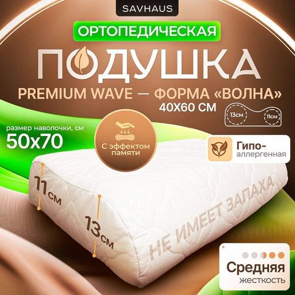 Experience the ultimate sleep sanctuary with the SAVHAUS Premium Wave Memory Foam Orthopedic Pillow. Crafted with premium memory foam, this pillow provides superior support for your neck and spine, adapting perfectly to the contours of your head and shoulders. Its ergonomic design, measuring 40x60cm with 11cm and 13cm high wave supports, caters to all sleeping positions – back, side, and stomach.