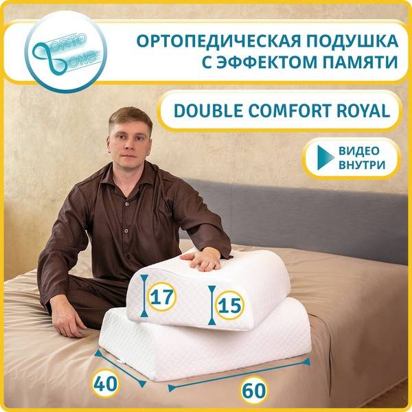 Experience the ultimate sleep comfort with the ORTOONE Double Comfort Royal orthopedic pillow. Crafted in Russia using premium European materials and adhering to strict European quality standards, this large (40x60cm) pillow features two height options (15cm and 17cm) to perfectly support back and side sleepers. Its memory foam construction, originally developed by NASA, conforms to your head and neck, relieving pressure points and promoting proper spinal alignment. Enjoy superior comfort, temperature regulation, hypoallergenic properties, and reduced muscle tension. Wake up refreshed and rejuvenated with the ORTOONE Double Comfort Royal.