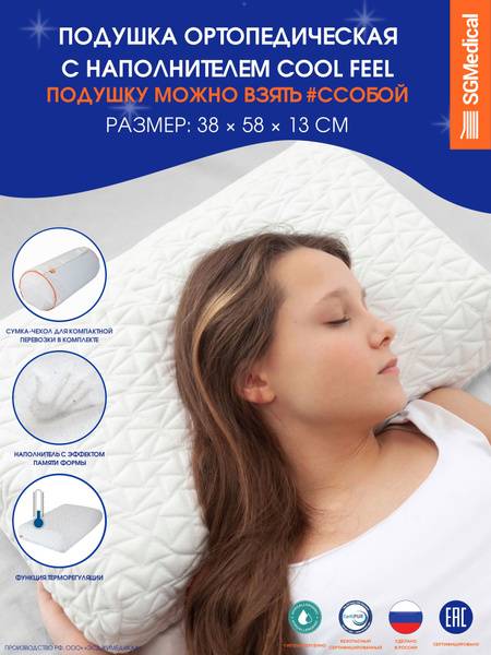Description: Experience ultimate comfort and support with the SGMedical orthopedic pillow. This luxuriously comfortable 40x60cm pillow, with a 10cm height, features innovative Cool Feel gel-infused memory foam. Unlike traditional memory foam, this advanced material remains consistently soft and supportive, never becoming stiff under pressure. The Cool Feel gel technology actively regulates temperature, providing a refreshing sleep experience.