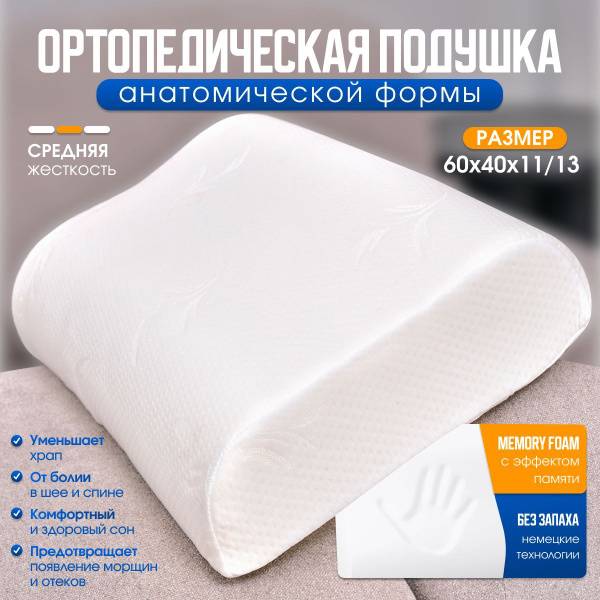 Orthopedic pillow, memory foam pillow, neck support pillow, back support pillow, 40x60cm pillow, 60x40cm pillow, anatomical pillow, hypoallergenic pillow, sleep pillow, comfortable pillow, pain relief pillow, osteochondrosis prevention, German technology pillow, gift for her, gift for him, memory foam, wave design pillow, dual neck support pillow, breathable pillowcase, machine washable pillowcase, superior sleep, restful sleep, healthy sleep, spine alignment, sleep better, reduce neck pain, reduce back pain.