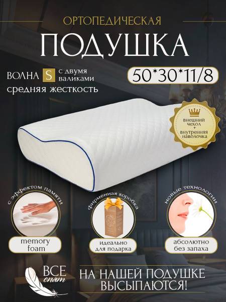 orthopedic pillow, memory foam pillow, anatomical pillow, neck pain relief, sleep pillow, hypoallergenic pillow, 50x30 pillow, 60x40 pillow, wave pillow, memory foam, insomnia relief, snoring relief, anti-stress pillow, Russian-made pillow, extra pillowcase.