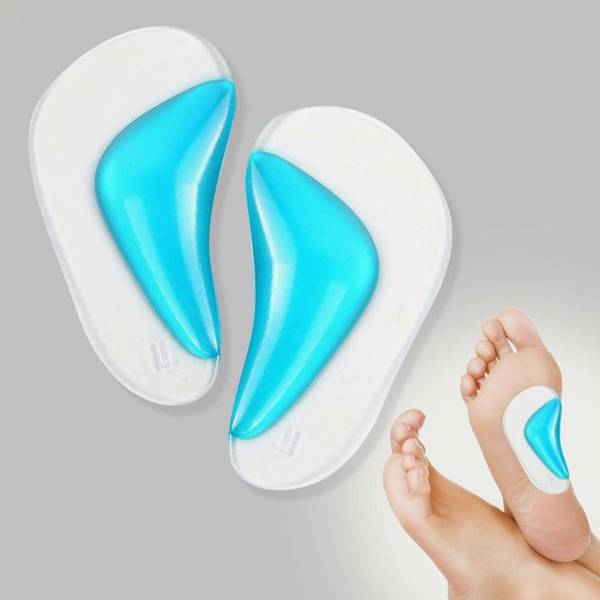 Experience superior comfort and support with our gel insoles and arch supports. These innovative insoles, featuring a durable, shock-absorbing gel, alleviate foot pain and pressure associated with flat feet. Their ergonomic design provides proper arch support, reducing fatigue and discomfort during prolonged standing or walking. The adhesive backing ensures a secure fit within your shoes, eliminating slippage. Easily washable and reusable, these versatile insoles are suitable for men's, women's, and children's shoes, offering all-day comfort and support for active lifestyles.