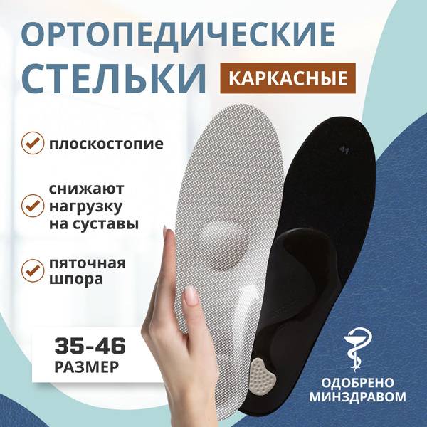 These medical-grade insoles are an excellent preventative measure against varicose veins and help alleviate the discomfort of swollen feet. They are actively used in orthopedics to treat a wide range of foot pathologies, providing therapeutic benefits and helping to prevent the development of flat feet, bunions, and other foot problems. The low-profile, molded plastic shell gently cradles the foot, providing moderate support for longitudinal arches and accommodating weights up to 176 lbs (80 kg).