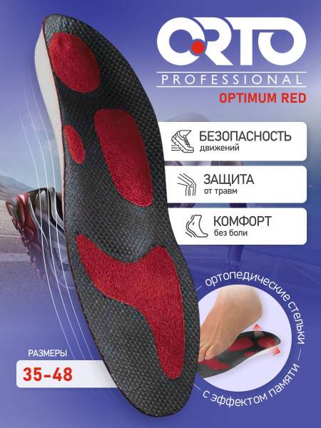 Experience ultimate foot comfort and support with Orto Professional Optimum Red orthotic insoles. Designed for men and women, these insoles alleviate pain from plantar fasciitis, flat feet, and other foot ailments. Featuring antibacterial silver thread, memory foam (Memopur®), and shock-absorbing HydroEnergy gel inserts, they provide superior cushioning and arch support. Ideal for long days on your feet, sports, or specific professions requiring prolonged standing or walking. Provides relief for localized pain and corrects foot problems like flat feet and high arches. Size 44. Order your pair today and experience the difference!