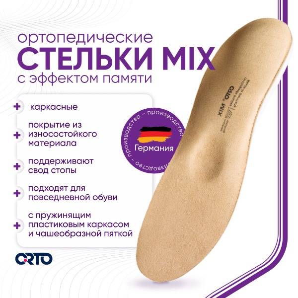 Experience superior comfort and support with Orto Mix orthotic insoles. Featuring Memopur® memory foam, these insoles mold to your unique foot shape, redistributing pressure and alleviating pain. The design includes a shortened frame with a teardrop-shaped heel cutout, pronounced longitudinal arch support, a medium-sized metatarsal pad, a cup-shaped heel cup, and lateral support. Made with durable, high-quality materials, these insoles are ideal for: