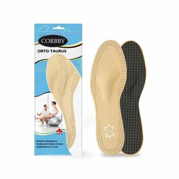 Keywords: orthopaedic insoles, anatomical insoles, prophylactic insoles, foot insoles, leather insoles, latex foam insoles, metatarsal support, pressure relief insoles, callus prevention, plantar fasciitis support, ORTO TAURUS insoles, CORBBY insoles, size 45 insoles, men's insoles, comfort insoles, arch support insoles.
