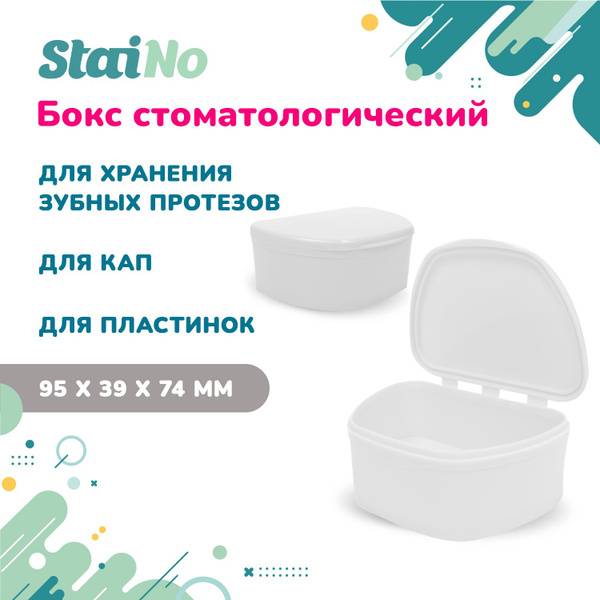 This high-quality, white plastic orthodontic box provides convenient and safe storage for removable dentures, retainers, and other orthodontic appliances. Made from durable, food-grade plastic, this case ensures long-lasting protection for your valuable dental devices. Its optimal size (95 x 74 x 39 mm) comfortably accommodates both upper and lower jaw prosthetics. Maintain the hygiene and longevity of your orthodontic appliances with this essential storage solution.