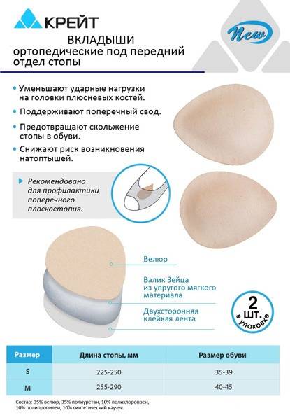 Title: Orthopedic Shoe Inserts, Metatarsal Pads "Drop" Shape, Size S