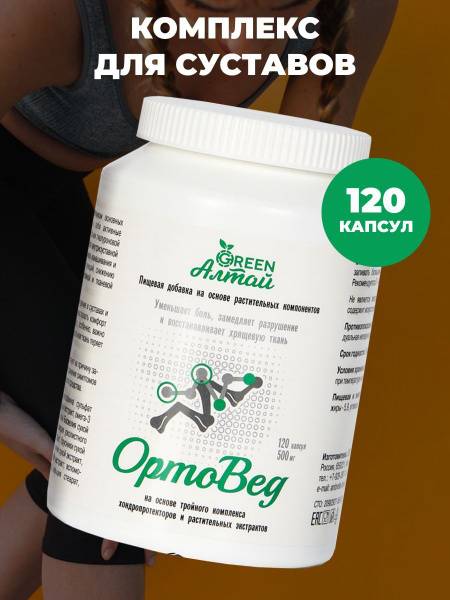 OrthoVed, joint support, joint repair, Green Altai Ambrella, chondroprotectors, hyaluronic acid, joint pain relief, osteoarthritis, osteoporosis, arthrosis, cartilage regeneration, joint health, musculoskeletal health, back pain relief, sciatica relief, heel spurs, bodybuilders, powerlifters, natural joint supplement, plant-based supplement, non-GMO, no artificial colors, no preservatives.