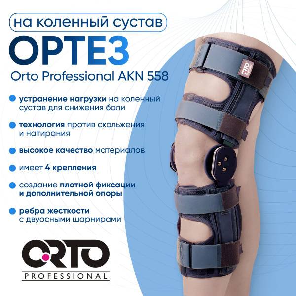 knee brace, knee support, polycentric hinges, knee osteoarthritis, knee injury, meniscus tear, ACL tear, MCL tear, LCL tear, PCL tear, rheumatoid arthritis, post-operative rehabilitation, knee stabilization, adjustable hinges, Orto AKN 558, hinged knee brace, knee pain relief, knee brace with sector locks, four-point attachment, semi-rigid knee brace, rigid knee brace, knee brace for sports, arthritis knee brace.