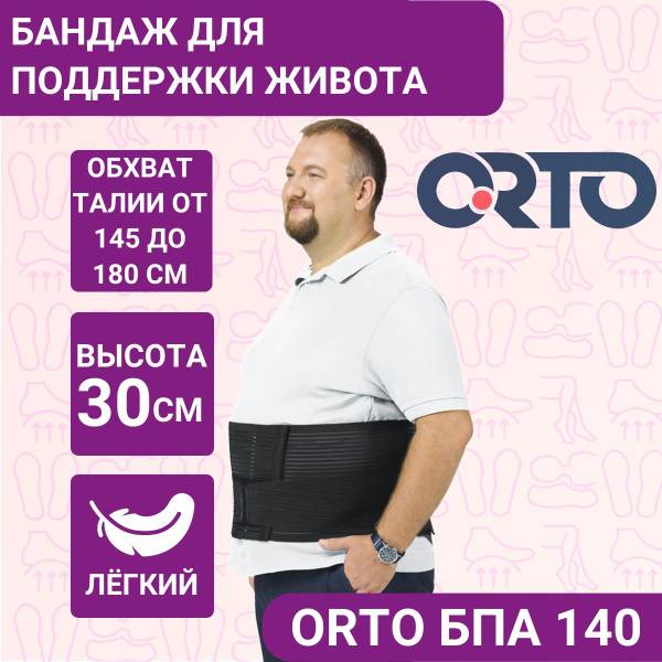 abdominal support bandage, back support brace, lumbar support, orthopedic bandage, hernia belt, post-surgery recovery, overweight support, obesity support, Orto BPA 140, XXXXL, visceroptosis, myofascial pain, osteochondrosis, osteoporosis, breathable, comfortable, adjustable, Velcro, support ribs, lumbar pain relief, abdominal binder, postural support.