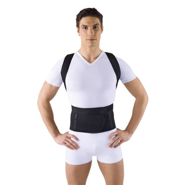 Description: The Orto KO 110 black posture corrector is an orthopedic device featuring a non-stretchable cotton back panel and elastic front, along with non-stretchable straps. Reinforced with two spring-loaded metal support ribs, this corrector gently guides your shoulders into proper alignment. Use the size chart below to find your perfect fit.