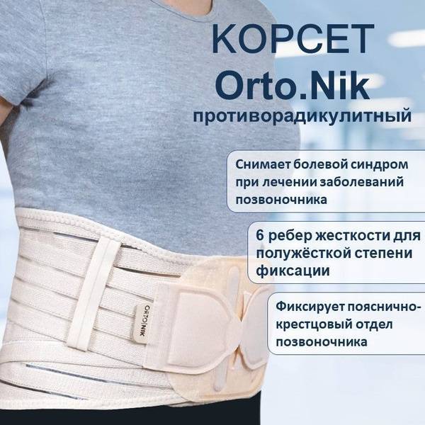 orthopedic corset, lumbar support brace, back brace, back pain relief, radiculitis, osteochondrosis, spondylosis, spondyloarthrosis, lower back pain, lumbar support, post-surgery recovery, spinal stabilization, adjustable back brace, comfortable back brace, breathable back brace, XL back brace, beige back brace, 25cm back brace, Ortho.Nik