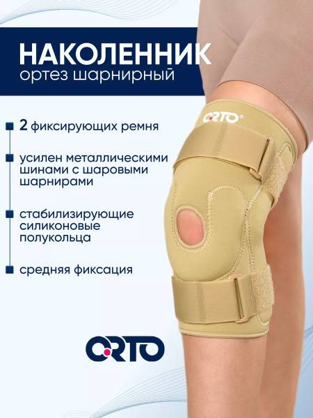 Experience reliable knee support and recovery with the Orto NKN 139 orthopedic knee brace. This circular knee orthosis features robust metal hinges and a stabilizing silicone ring, crafted from durable, elastic neoprene. Ideal for rehabilitation after knee injuries and surgeries, managing knee joint instability, osteoarthritis, and hemophilic hemarthrosis. Its design also aids in cases of ligament weakness and prevents abnormal tibia positioning. The Orto NKN 139 offers moderate fixation, unloading the ligamentous apparatus while maintaining essential knee mobility. The metal side splints with ball joints effectively guard against lateral deviations and hyperextension. A silicone patella ring stabilizes the kneecap, reducing displacement risk. The neoprene base provides gentle warming, a micro-massage effect, and excellent thermoregulation. Two adjustable straps ensure customized compression and a secure, non-slip fit, making it perfect for active rehabilitation, high-impact activities, professional and amateur sports, and daily life with prolonged standing or walking.