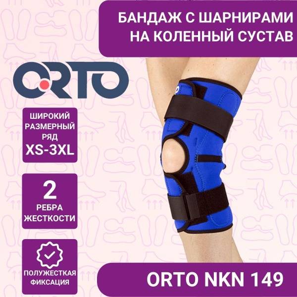The Orto NKN 149 hinged knee brace provides semi-rigid support and stabilization for the knee joint. Made from neoprene with two adjustable straps and durable metal hinges, this detachable brace offers superior support and comfort. Its design prevents hyperextension and lateral instability, while a patellar opening ensures optimal stabilization of the kneecap. The neoprene material provides a warming and massaging effect. Ideal for various conditions including post-surgery recovery, ligament injuries, osteoarthritis, and more. Provides excellent support even under high loads. Height: 32cm. Suitable for both left and right knees.