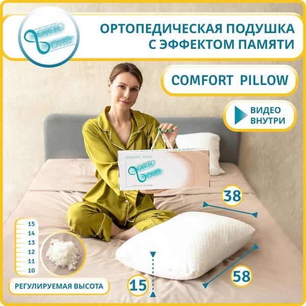 Experience the ultimate sleep comfort with the ORTOONE Comfort Pillow. This premium memory foam pillow, crafted in Russia to European standards, features an adjustable height (15-10cm), conforming to your body's unique contours for optimal neck and spine alignment. Made with imported European materials, this pillow offers superior pressure relief, temperature regulation, and hypoallergenic properties. Its removable outer and inner covers (both zippered) ensure easy cleaning and maintenance. The standard 38x58cm size fits most standard pillowcases (50x70cm). Designed for all sleep positions (side, back, stomach), the ORTOONE Comfort Pillow promotes healthy sleep, reduces snoring, and alleviates neck and back pain. Its innovative design, inspired by NASA technology, provides unparalleled comfort and support for a truly restful night's sleep. Presented in elegant gift packaging, the ORTOONE Comfort Pillow is the perfect gift for yourself or a loved one. Experience the ORTOONE difference – sleep soundly, wake refreshed.
