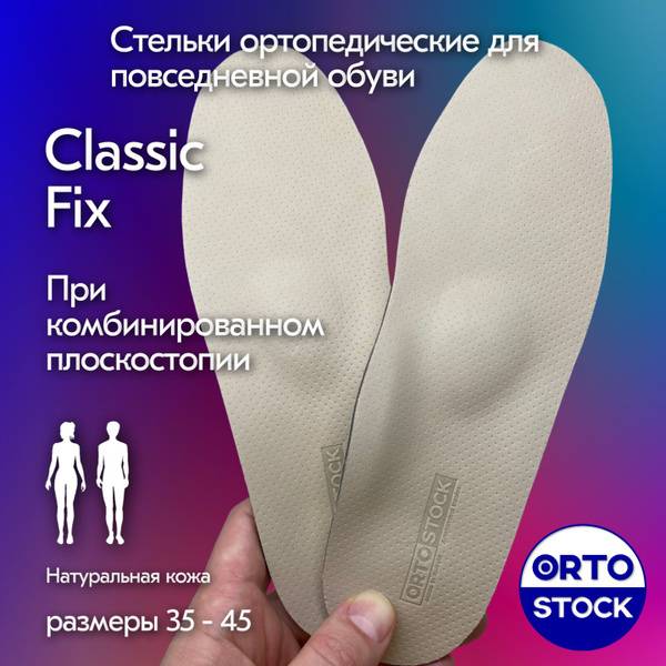 Experience superior comfort and support with OrtoStock Classic Fix 36 orthotic insoles. Crafted with a leather top cover, these insoles feature a supportive plastic frame and shock-absorbing PU foam elements. Designed for shoes with closed backs, they promote proper foot arch alignment and reduce strain during walking. The strategically placed orthotic elements effectively compensate for lost foot function, minimizing impact and relieving pain. Ideal for: