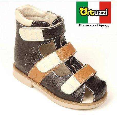 Description: Ortuzzi ORT-80A-006A.12NT orthopedic sandals offer gentle, therapeutic support for children with mild to moderate foot deformities. Designed for correcting flat feet and valgus deformities, these sandals accommodate custom orthotic inserts. Continuous wear promotes proper foot and arch development, healthy joint formation, and prevents further deformity. Featuring a Thomas heel with an extended counter to prevent hyperpronation, stabilize the foot, unload the ankle joint, and ensure correct foot placement during walking. A built-in gait analysis system allows parents to easily monitor their child's gait during the first few weeks of use, identifying the need for an orthopedist visit via sole markings and included instructions. Available in sizes 31, 32, and 34. Made with genuine leather upper and lining.