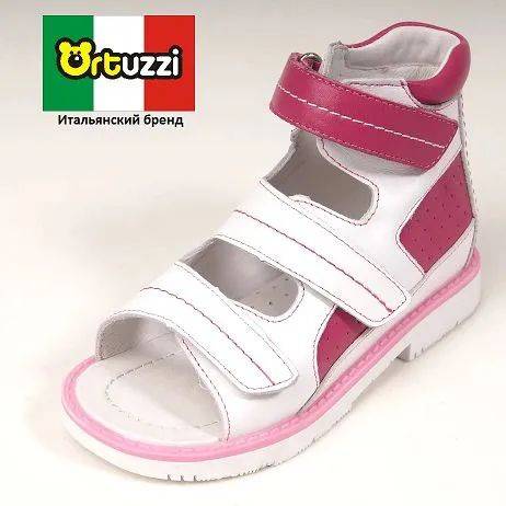 Description: Ortuzzi ORT-92C-203E.21HC orthopedic sandals offer gentle, therapeutic support for children with mild to moderate foot deformities. Designed to correct flat feet and valgus deformity, these sandals feature a Thomas heel with an extended counter to prevent hyperpronation, stabilize the foot, and unload the ankle joint, ensuring proper foot placement during walking. A built-in gait analysis system allows parents to easily monitor their child's foot development using the integrated sole markings and included instruction booklet, identifying the need for an orthopedist's visit within the first few weeks of wear. The anatomical insole with arch support promotes proper foot positioning and arch development, encouraging healthy joint formation and preventing further deformity. Available in sizes 21-30. Crafted from premium natural leather (both upper and inner lining), these sandals are available in fuchsia/pink.