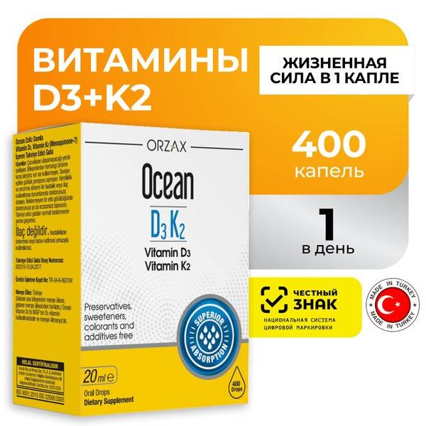 Description: ORZAX Ocean Vitamin D3K2 provides a potent combination of essential fat-soluble vitamins, crucial for overall well-being. This supplement is free from synthetic additives, artificial colors, sweeteners, flavors, and added sugar, ensuring a pure and safe option for adult use. Conveniently delivered in drops, ORZAX Vitamin D3K2 offers a synergistic blend of Vitamin D3 and Vitamin K2, working together to support various bodily functions.